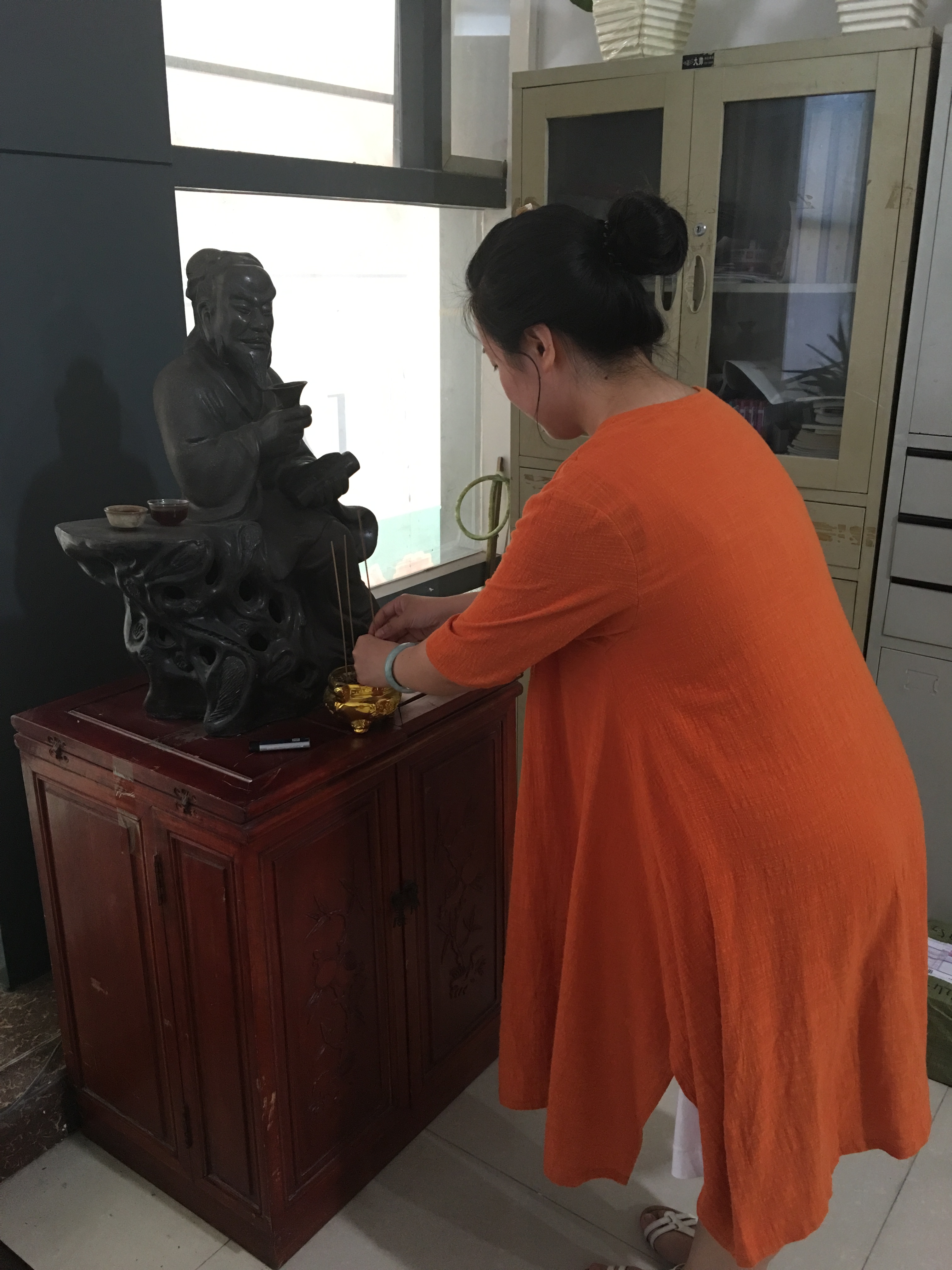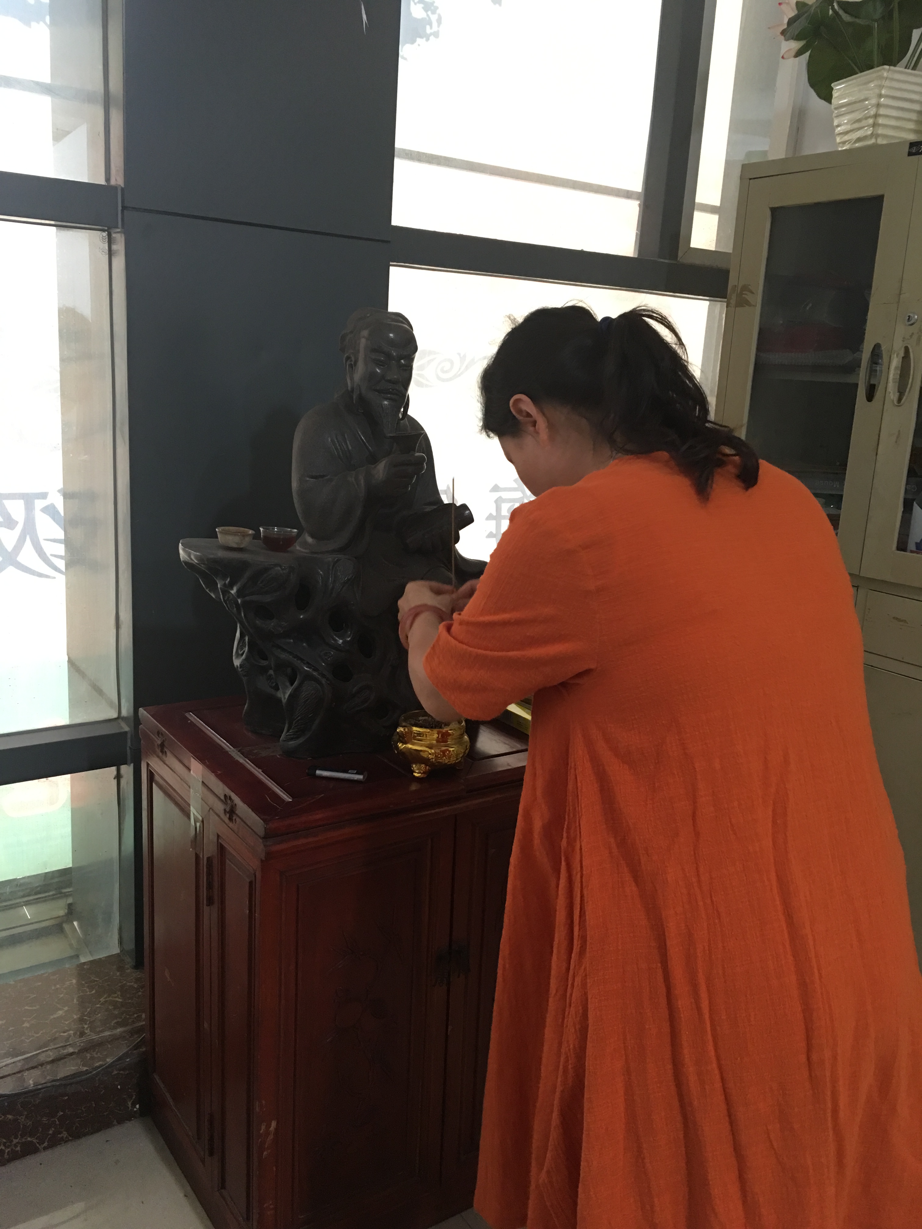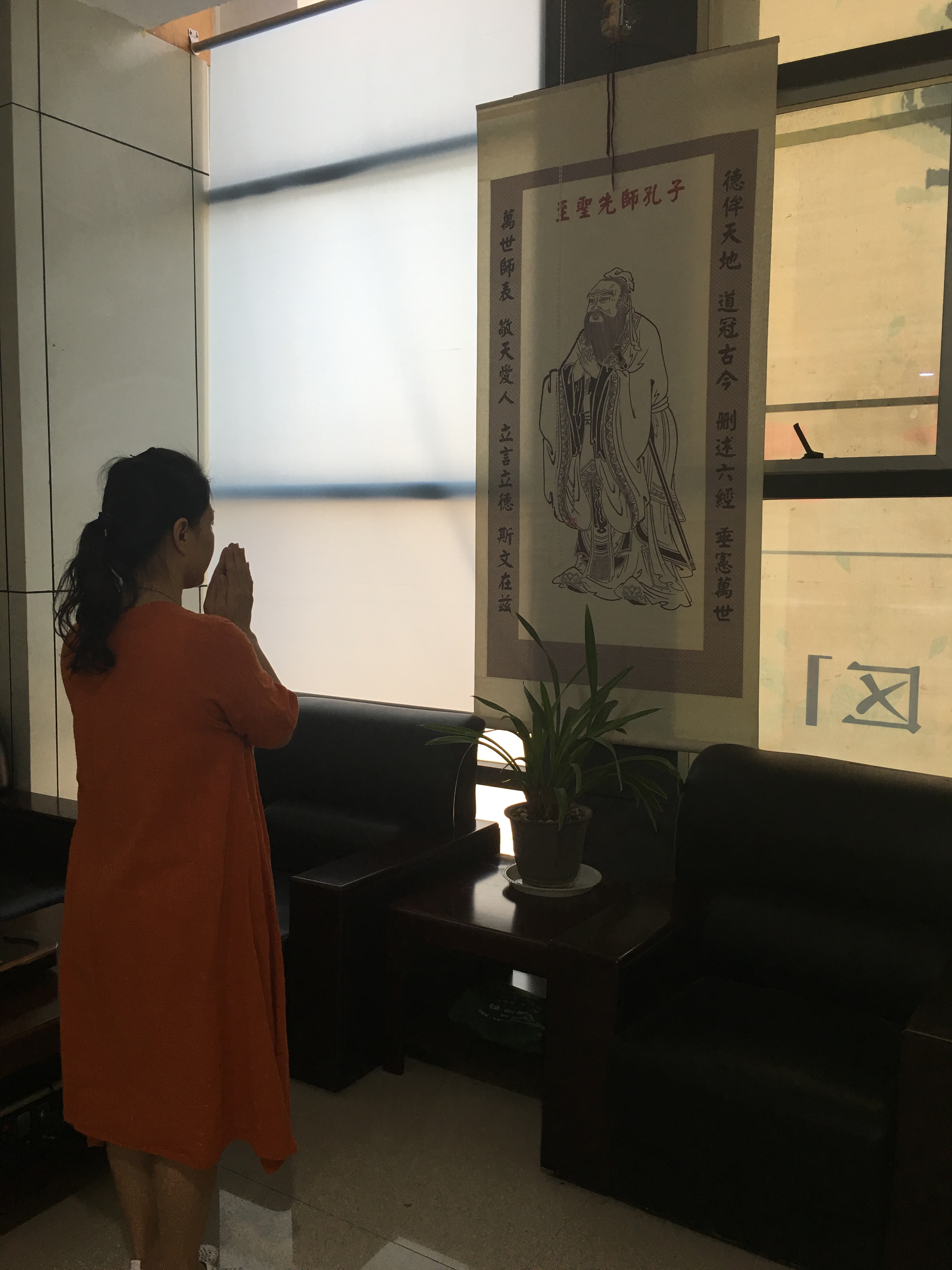 为了打造学校的良好风尚,更好的教书育人----创全国名校。我校教师在每周一上午九时在学校办公室举行祭拜孔子仪式。孔子是教育事业的先人,万世师表,作为教师应该敬奉先人,做好教育工作。