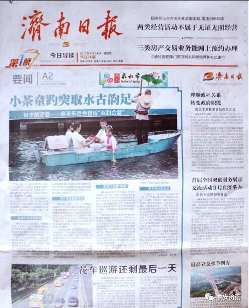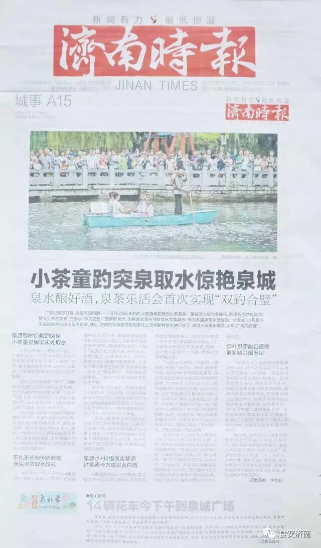 2017年8月23日,在济南趵突泉第五届济南泉水节茶乐会活动中, 我校师生主办小茶童取水活动,从趵突泉泉眼中取上来的水,再由济南汉唐茶艺学校的小茶童为大家展示泉水泡茶茶艺表演,活动中还有国学朗诵,市民看到表演会都称赞精彩。