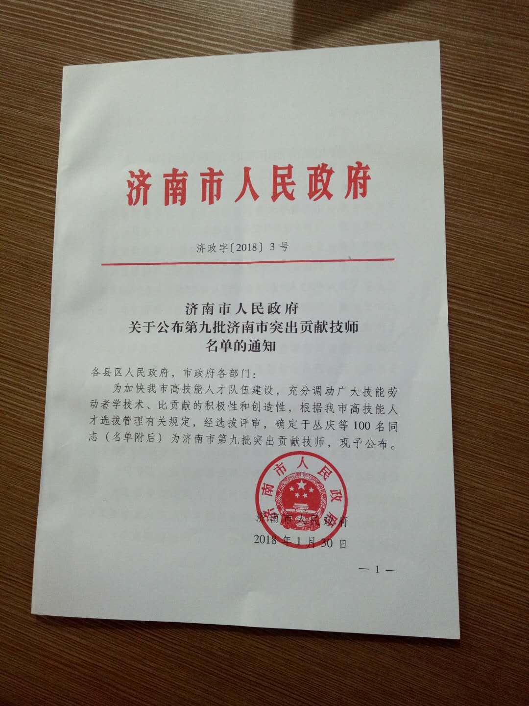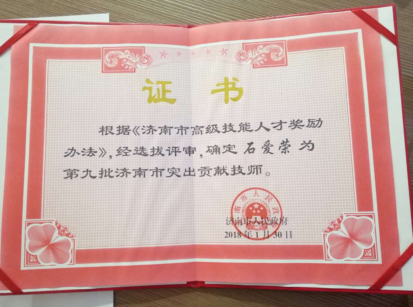 祝贺我校石爱荣校长被评为济南市突出贡献技师