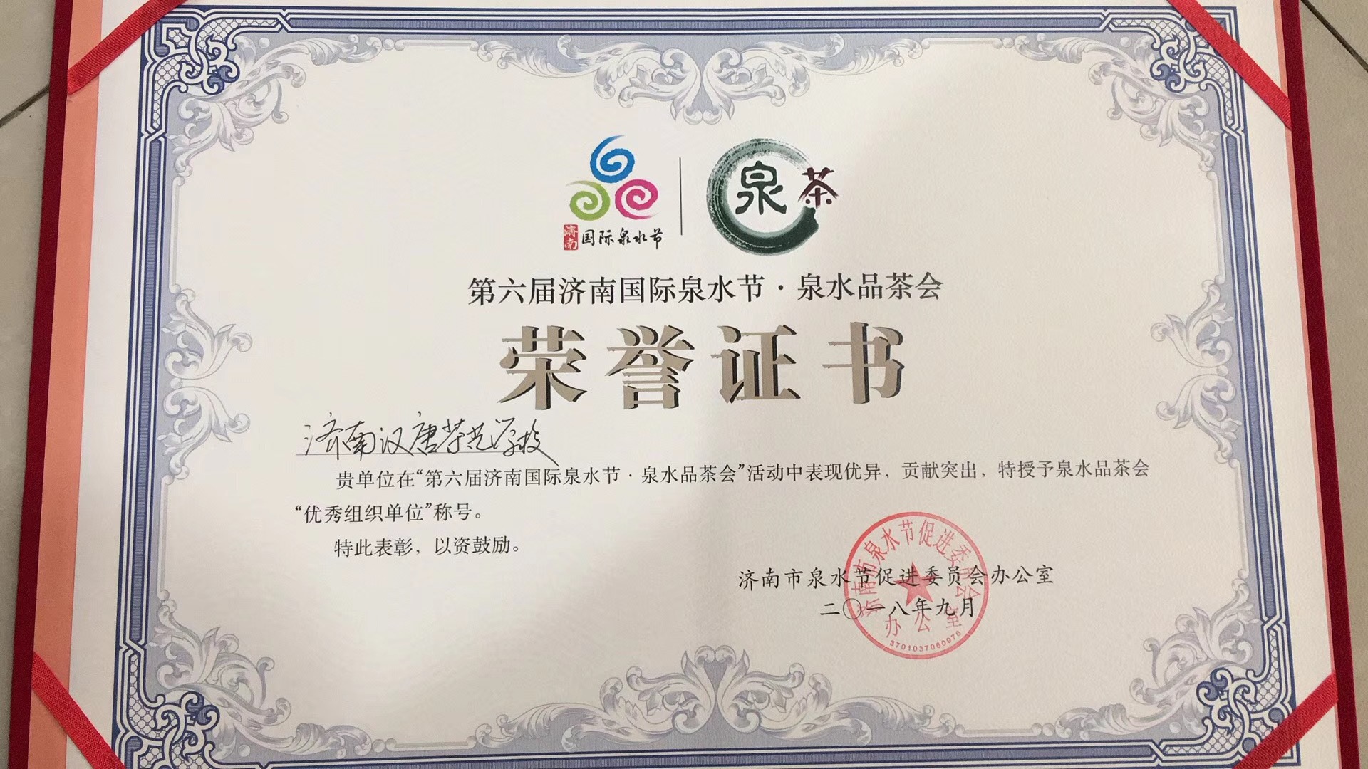 我校在2018年泉水节活动中获得的荣誉证书