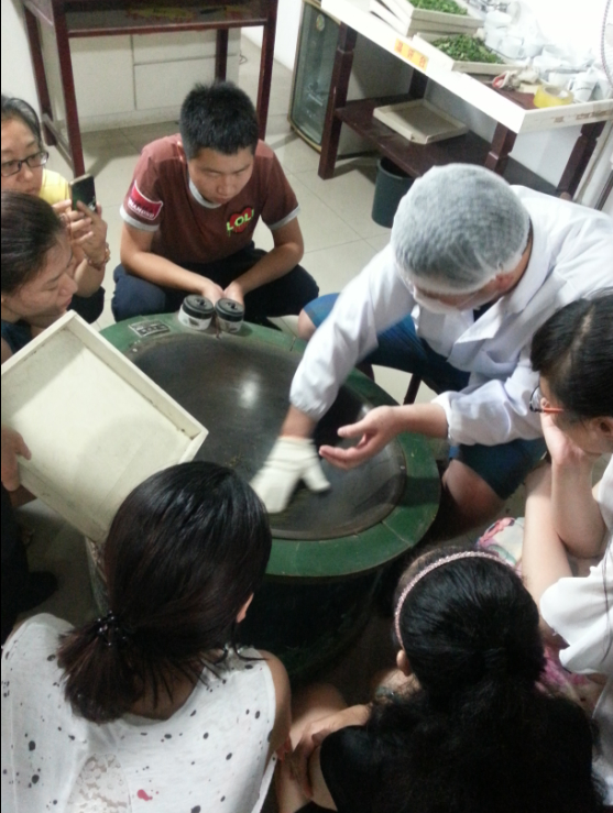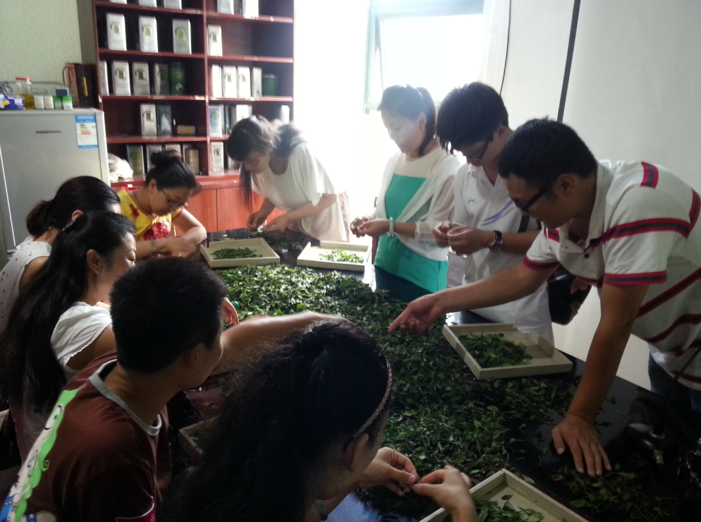 2014年7月7日,我校在日照茶园运来日照绿茶鲜叶,教给学生如何炒制绿茶。在理论课上,老师给大家讲绿茶的加工工艺需要杀青、揉捻、干燥的加工过程,但同学们都没有亲自体验过。技能课上,学生们自己挑茶,知道什么样的鲜叶是一芽一叶、一芽两叶;自己炒制,知道炒制绿茶的温度应该控制在多少;杀青的目的是钝化酶的活性;揉捻是为了造型;干燥是祛除水分并提香……同学们一一进行体验绿茶的炒制过程。通过体验,学生对书本上所学的知识理解更深刻。通过理论和实践相结合的教学方式,使学生们学以致用,从而更好的提高学校教学质量。