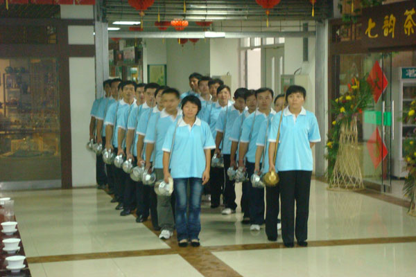 | 2009年9月1日赴日长嘴壶茶艺培训学员(20人)全部通过了济南市劳动和社会保障局鉴定中心的考试考核。(请见穿蓝色统一服装图片)有视频 第七期赴日本长嘴壶茶艺班于2009年8月3日正式开课 第六期赴韩国长嘴壶茶艺师培训班与2009年7月29日经劳动局考核顺利毕业,已赴韩国 我校第五期学员都已毕业,并成功应聘到韩国一家大型茶艺馆工作。 (2009年6月25日) 我校正式开办“长嘴壶功夫茶茶艺”培训班(少林功夫茶茶艺),现正在报名中,学员培训合格后,颁发中华共和国茶艺师资格职业证书,并推荐就业。 茶艺是中国传统文化的瑰宝之一,随着社会的进步和人民生活水平的提高,人们必须更加注重生活品质。茶艺馆、酒店等餐饮业都需要大量的长嘴壶专业茶艺表演者,我校是江北唯一具有资质的该专业茶艺培训学校,师资力量雄厚,学员遍布全国各地乃至国外。 学员通过培训: 1.获得相关专业知识及技能。 2.结识相关人员便于茶文化交流。 3.获得更好就业机会。 课程内容: 1.理论知识:(1).茶起源(2).茶文化(3).茶艺基本知识(4).泡茶用水基本知识(5).茶具基本知识(6).茶艺、茶道基本知识 2.技能知识:(1).凤凰点头(2).白龙过江(3).一帆风顺(4).苏秦背剑(5).倒转乾坤(6).高山流水(7).童子拜寿(8).贵妃醉酒
