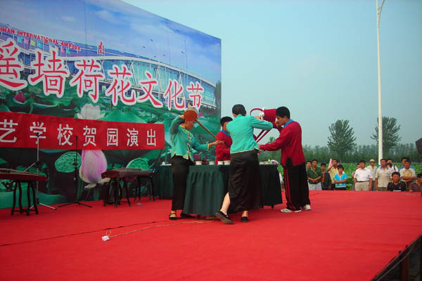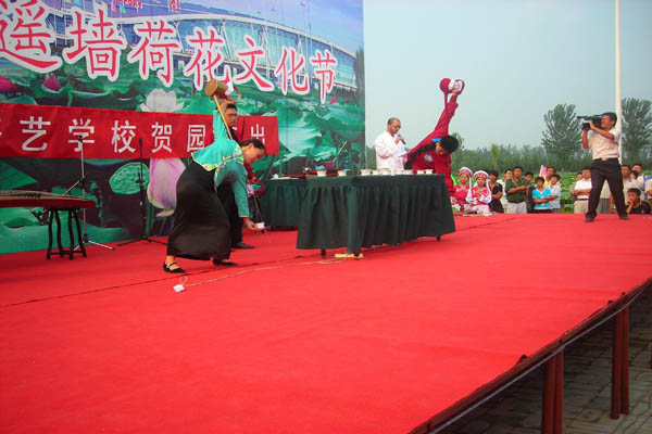 济南市遥墙镇领导特邀我校参加表演 ,为荷花文化节曾加一道美丽的风景线,得到遥墙镇领导及群众热烈欢迎,并邀请我校参加第二届荷花节。